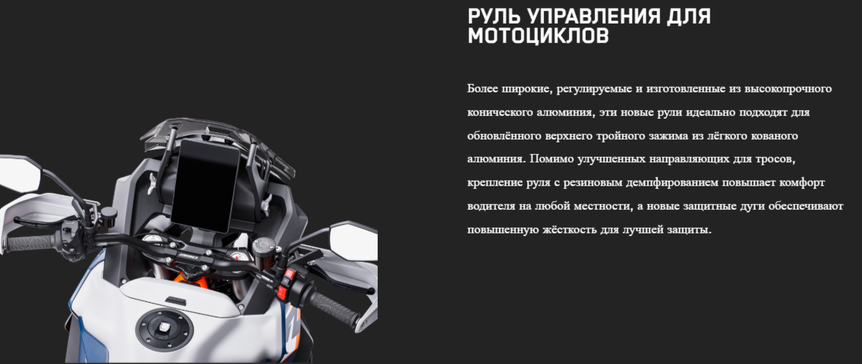 - Дизайн и комфорт: Мотоцикл имеет новый светодиодный блок фары с функцией освещения поворотов и регулируемое ветровое стекло.