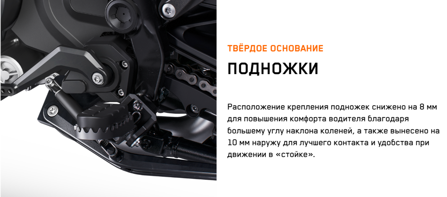 Улучшенная эргономика: Подножки водителя стали на 8 мм ниже и на 10 мм шире, что обеспечивает более комфортное положение ног. Руль также стал шире и имеет несколько положений регулировки.
